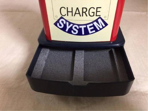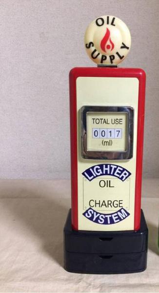 1940-50年代のオールドガソリンスタンド型「オイル注入機」背面部からオイル缶を入れるだけ、電源は不要。後はサイドのスイッチをONにし、背面のボタンを押せば、給油ノズルからオイルを注入できます。 また、2個分のジッポー収納スペースとメンテナンス・ツール付き。(※ピンセット・ドライバー・発火石ケース・専用ブラシ) 軽度の使用品で微キズ等はみられますが、比較的きれいな状態です。(サイズは約33.5×11.8×7.5cm) 販売終了品で、今では入手困難なアイテムです。お探しの方如何ですか、、、 |