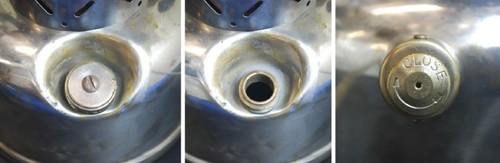 | 備考: | コンディションですが、ベンチレーターには、下段のエッジ部分に細かいチップ、フレームには、サビの付着と、ハンドルの右側取付フレーム上部の溶接が、1箇所外れています。(使用には、全く問題ありせん) メッキタンクには、小さな数ミリ程度のエクボが、あちこちに点在しており、年を重ねて来たビンテージなヤレ感が良い味を出しています。 グローブは、PYREXの「グリーン・サンシャイングローブ」ですが、微キズが見られます。(画像-10参照) ※画像に撮影時のライトの映り込みが見えますが、キズ等ではありません。 |