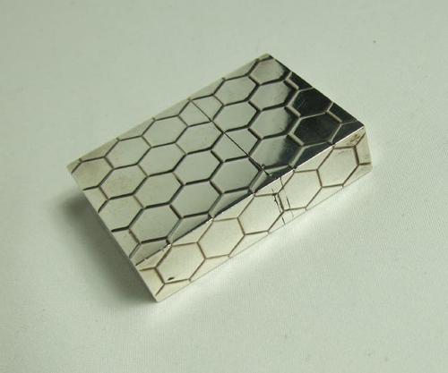 | 備考: | ティファニー社製・ジッポーの代表格「ハニカム」イタリアで製作された「純銀925」のケースに、ジッポー社製・ニッケルシルバーインサート(1947年~51年製)を装着した逸品です。 ※ハニカムとは、英語でミツバチの櫛(=蜂の巣)という意味で、多くの蜂の巣がこの様な形をしている事から名付けられました。 バンブーとハニカムはティファニー・ジッポーの双璧です。お探しの方、如何ですか、、、 |