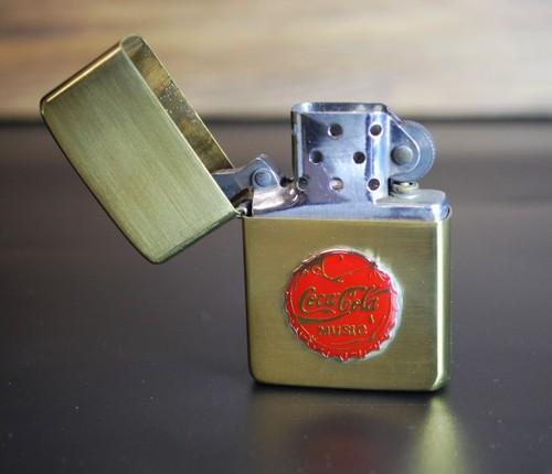 | 詳細: | 「真鍮」ブラスケースに、カスタムメイドのコカコーラ・ピンズ貼り(後貼り)、存在感のあるジッポーです。 |