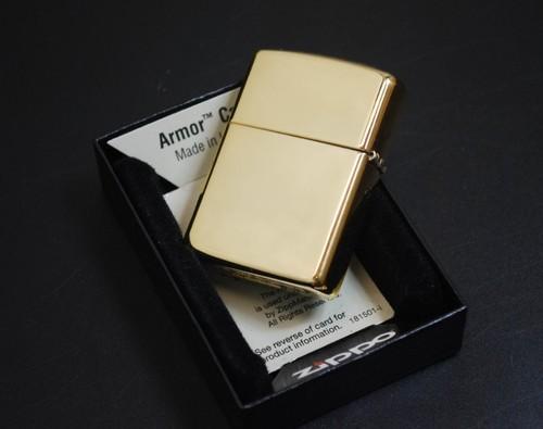 フルチューニング・ジッポー!! ゴールド・ハイポリッシュ・アーマーケース 2022年製 クリック音♪良好【ZIPPO】