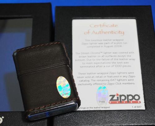 | 詳細: | ZIPPO CLICK CLUB(クリック・クラブ会員)647個限定販売、レザーラップ(革巻き濃茶色) ※米国ジッポー社の会員制クラブ(ZIPPO CLICK CLUB)、会員にならないと購入できない希少なジッポーです。 |