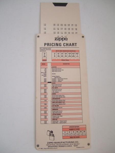 1981 ZIPPO PRICING CHART(インプリント価格早見表) 【ジッポー】