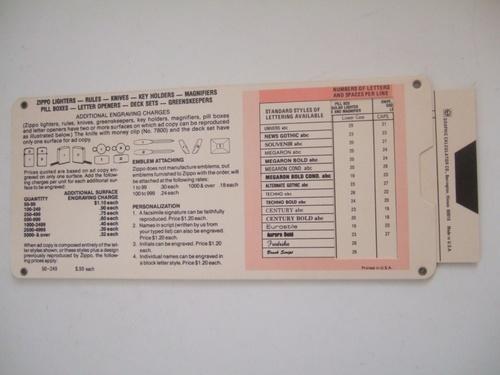 | アイテム: | 1981 ZIPPO PRICING CHART(インプリント価格早見表) 【ジッポー】 |