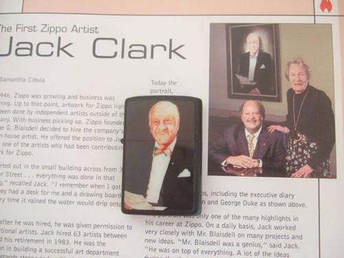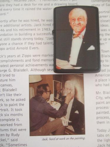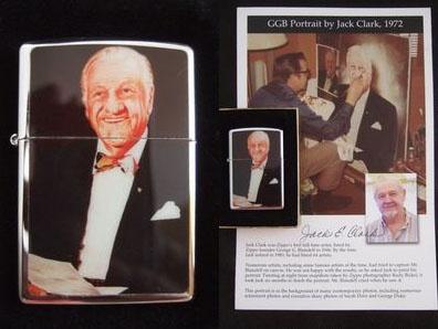 ジッポー社創業者(ジョージ・G・ブレイズデル)の肖像画は、1972年ジッポー社専任アーチスト(ジャック・E・クラーク:1946年ブレイズデルが初めて専任アーチストとして招聘したデザイナー、タウン&カントリーシリーズ等名作デザインを残した人物)により描かれました。 このライター・ポスターセットは1997年にジャック・クラークが”レセプション”で関係者に贈呈したものです。 |