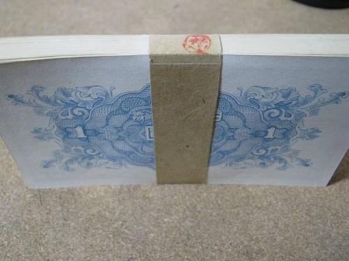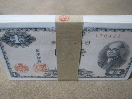 | 詳細: | 二宮尊徳の1円札の100枚束です。 昭和21年3月19日・発行開始、印刷局酒匂工場、帯封付き。 |
