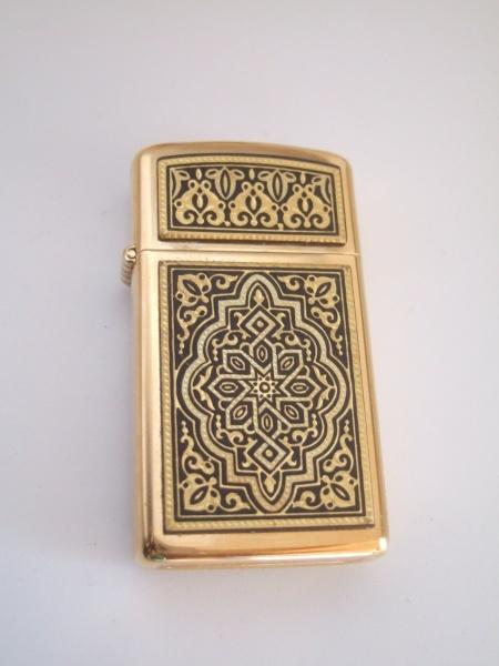 | 詳細: | スペインの有名な彫金細工の街、トレドの金職人はその芸術的な作品によって、世界で広く知られています。 綿彫りした銅板に金糸を象嵌した古都トレドの技法、アラビアから伝わった技術で、紋様にはアラビア的な幾何学模様やルネッサンス的な花、鳥などをモチーフにしたものがあります。 このライターは、銅板プレートを両面に貼り付け加工したものです。 |