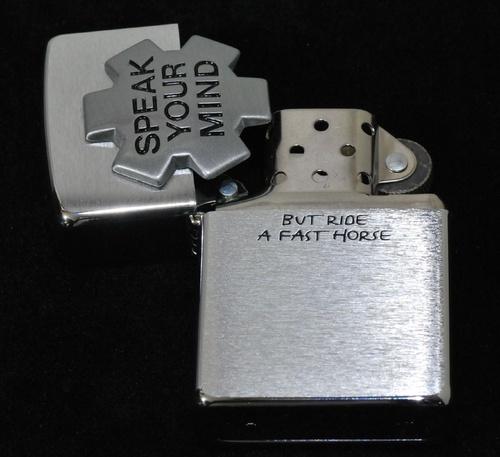| 詳細: | SPEAK YOUR MIND リッドを開けると、BUT RIDE A FAST HORCE と描かれています。(欧州モデル) |