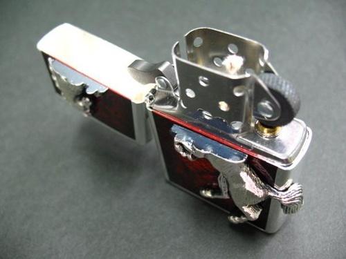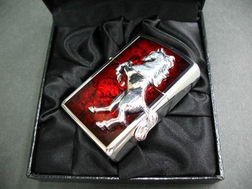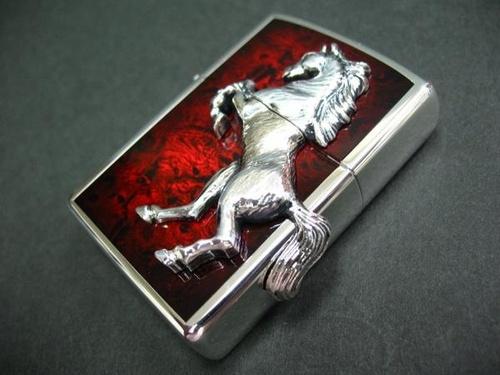 | 詳細: | 勝利の嘶き(いななき)の名を冠したジッポー、ウィニングウィニー(Winning Whinny)シリーズ。 美しいシルバーミラー仕上げに、ダークな色合いのディープレッドのエポキシ研ぎ出し加工が非常に渋みのある逸品。本体2面に立ち上がって嘶く精巧なホースメタルを施した、持つ人の勝利を願う縁起の良いZIPPOライターです。 |