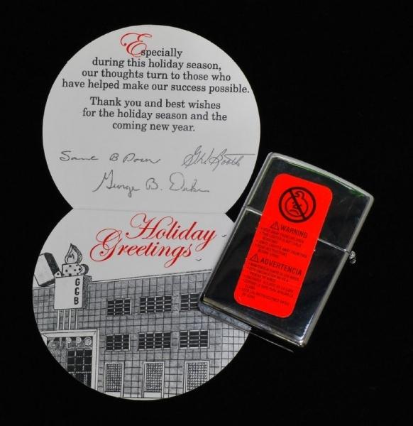 | 詳細: | 本社ビル50周年記念の2005年、本社ビルのエッチングデザインのライターと、Greeting Cardがセットになった一品です。 Built 1955 (1955年建造) オーナー :サラ・ドーン 現オーナー:ジョージ・デューク 現社長 :グレゴリー・ブース 3名のサイン入りです。 |