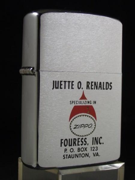 | 詳細: | 1963’ SALESMAN ZIPPO JUETTE O,RENALDS FOURESS,INC.P.O,BOX 123 STAUNTON.VA |