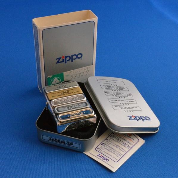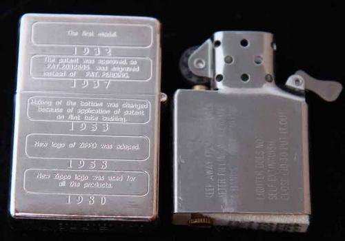 | 詳細: | とても人気のあるデザインです! 歴代ジッポーのボトム刻印をジッポー表面にメタル貼りしています。 シリアルNo.1568。 |