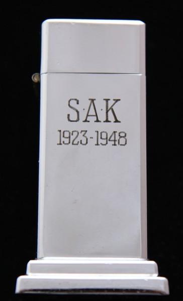| 詳細: | 1947から1949年に製造されたテーブルライターはセカンド・バークロフトと呼ばれています。ファースト・バークロフトとの違いは台座が2段で、ハイポリッシュ仕上げのものが多く存在します。(稀に、ブラッシュ仕上げのものも存在)。サイズは 108.0 x 54.5 x 41.6mm、インサートには大型タンクが使用されています。 |