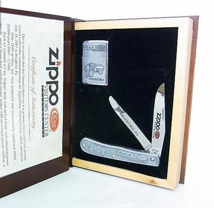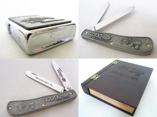 | 備考: | 未使用品、BOOK型のチェリー製のケース、ジッポーと同デザインのナイフ・ハンドルには、ジッポーと同じ「シリアル・ナンバー」が刻まれています。 |