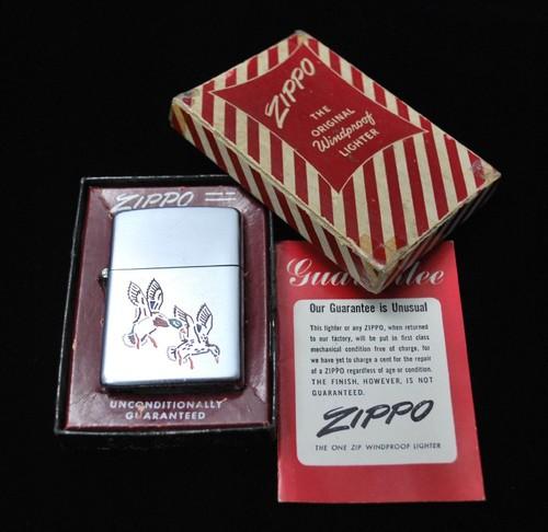 | 詳細: | MALLARD DUCK 有名図柄です。 ジッポー博物館NO.3 205ページに紹介されています。 David Poore著 「The Great American Lighter」 edition2 P171参照。 |