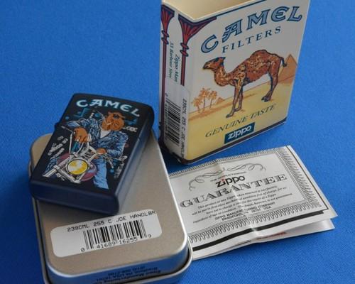 | 詳細: | タバコブランドの中でも人気のキャメル・ジッポー。1988年のキャメル75周年時に登場したラクダのキャラクター「Joe」は、その後10年間タバコのパッケージに描かれ、その多くはジッポーにもなりました。 |
