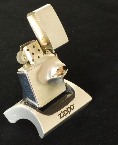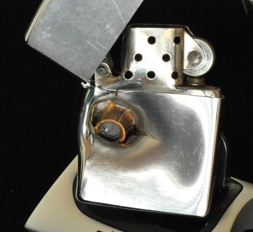 | 詳細: | 伝説の命を救ったZIPPO(病院の警備員が3人の不審者に襲われ、一人が警備員の胸を狙い撃ちした、警備員のポケットにあったZIPOOが凶弾を食い止め命を救った)と言う逸話。