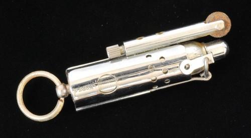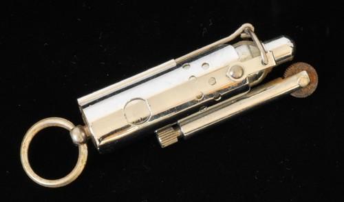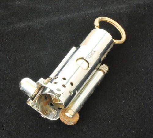 | 詳細: | ネバダ・トレンチライターの使い方:外側部分を指で押さえたまま、一方の手で「金属の輪」を引きキャップを開き、ローラーを廻して着火します。 画像の様にリベットが1本ない為、ジャンク品扱いです。(ご理解の上」ご購入下さい) |