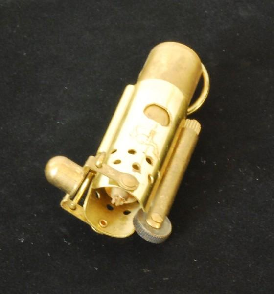 | 詳細: | ネバダ・トレンチライターの使い方:外側部分を指で押さえたまま、一方の手で「金属の輪」を引きキャップを開き、ローラーを廻して着火します。 |