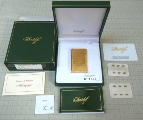 | 詳細: | ライン2をベースに「お洒落」なカッティングを施されたデザインです。(ライン ダイアカット ゴールド) 有名なシガーブランドであるダビドフとエス・テー・デュポンとのコラボで販売されたモデルです。 参考画像は、Wバーナー着火画像です。(デザイン違いの同型ライター) |