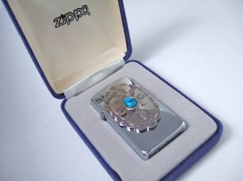 | 詳細: | 金属プレート(表面)に、トルコ石を嵌めた重さ57gの豪華で重量感のあるジッポーです。(通常スリム・タイプは42gです) |