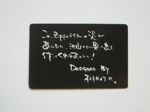 | 詳細: | ジッポー社提供のラジオ番組「ZIPPO STORY」のパーソナリティで女優&歌手の桃井かおりさんがデザインしたジッポーです。(女性を意識したデザインです) |