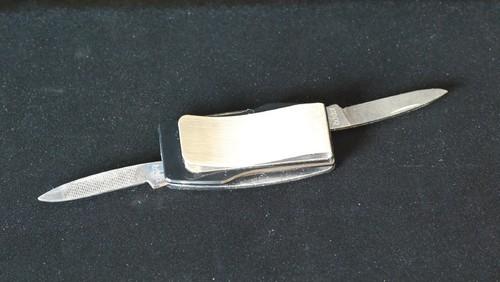 | 詳細: | Bell Sistem Yellow Pages 両サイドからナイフが出る仕組みで、片方のナイフにはヤスリも付いています。 また数枚お札もはさめるので、旅行などにはおしゃれで便利です。 |