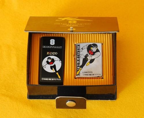| 詳細: | 8 EIGHTMAN Zippo LMITED EDITION 「8マン」は、週刊少年マガジンに1963年5月から連載された漫画です。 ボディはハイマンガン製、超音波も聞き取れる耳、通常の壁なら透視できる「透視装置」及び「紫外線放射装置」の付いた眼、弾丸よりも速く走れる能力を持ち(最高3000km/h)、ウラニウム(原子力)をエネルギー源とした、戦闘用ロボット08号です。 ©平井和正/桑田二郎/テクノマックス |