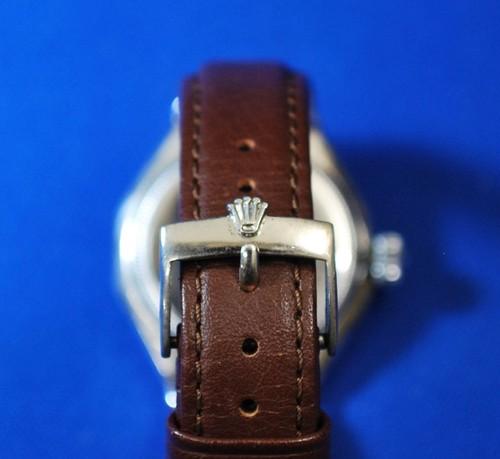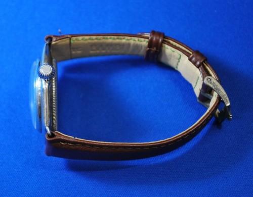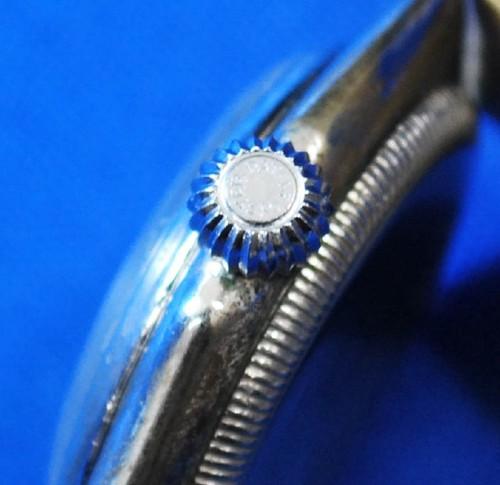 | 備考: | ケースはメンズ・サイズ(35㎜:リューズ含む)ですが、革ベルトをレディス仕様の変えています。(2016.10.16.O/H済み) ※1927年10月7日、イギリスロンドンの英国紙”デイリーメイル”の速記者であるメルセデス・グライツ嬢がドーバー海峡を渡るという女性では世界で2人目の快挙となった。そしてそれは、ドーバー海峡を渡ったという事実よりもその腕に嵌められていたのがロレックス社の時計であったことに世界は驚愕した。 そして、グライツ嬢が腕にはめたモデルが”オイスターオクタゴン”です。ケース裏蓋刻印(65877 2136)1948年製。 |