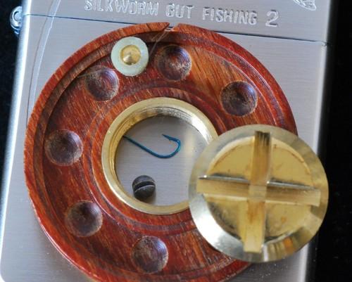 | 詳細: | ケース表面はリールのデザインになっています。センター中央部分のネジをコイン等で回すと、中には針とおもりが入っています。リール外側の糸止めゴムは、浮きゴムに利用できようになっています。 これで「魚」が釣れるんでしょうか? |