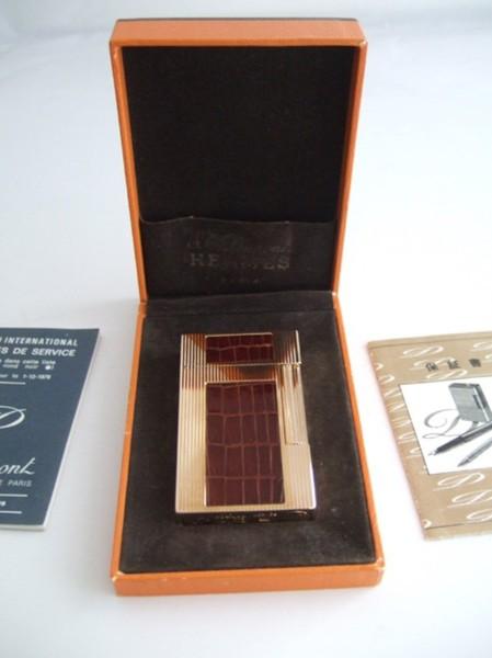 | 詳細: | ライン2をベースに、茶の本クロコで「 HERMES」の “ H ” をイメージしたデザインです。 エルメスとエス・テー・デュポンとのコラボで販売されたモデルです。 |