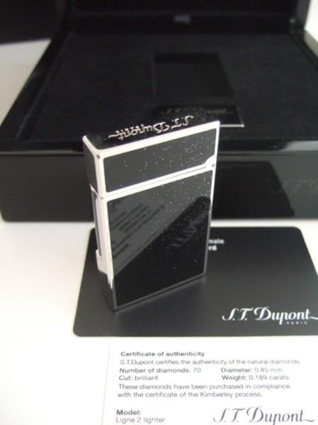 | 詳細: | 製造70周年記念モデル!シリアルナンバー(381/770)、世界限定770個販売。 エス・ティ・デュポン社は、ライター製造70周年を記念して「770本」のシリアルナンバー入り限定エディションを制作販売しました。 デユポン純正・黒漆にパラディウム・ハイポリッシュ仕上げのこのライターは、シルバーパウダー装飾と70個のブリリアンカット・天然ホワイトダイヤモンド:0.85㎜ (0.189ct) X 70個をあしらい見応えのある豪華なデザインに仕上がっています。 2011年にリリースされた希少限定モデルです。(P/N: 016735 ) |