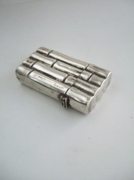 | 備考: | ティファニー社製・ジッポーの代表格「バンブー」イタリアで製作された「純銀925」のケースに、ジッポー社製:スリムサイズ・インサートを装着した逸品です。(インサート:同年代の未使用品に交換済み) スターリングなので磨けば、まだまだ光り「銀製品」特有の黒ずみも落ちます、お探しの方如何ですか、、、 |