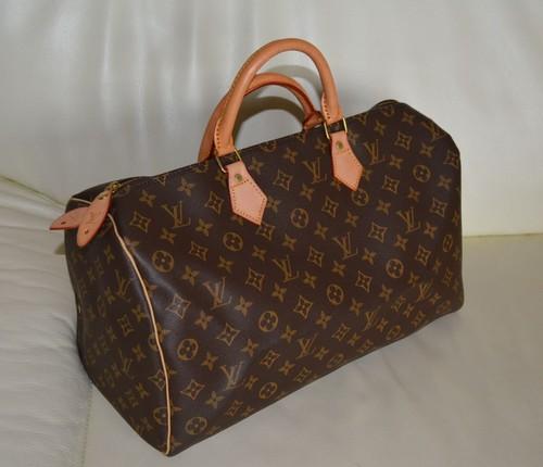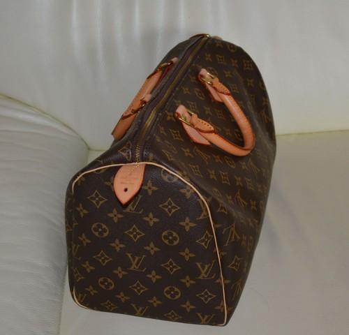 | 詳細: | スピーディ35とスピーディ40の中間サイズ、横約38cmです。 また、画像4のジッパータグのホール位置も違います。 そして何より、ファスナープルに使用されているビス(金具)に何も刻印されていません、本物は「LOUIS VUITTON」の文字が円状に刻印されています。 私が知人に頂いた物で、実用には問題ありませんが、フェイク品と思われます、ご理解の上ご購入下さい。 |