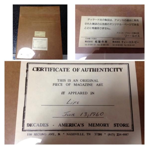 | 詳細: | Life June 13.1960 アメリカ・テネシー州輸出局の「リー・ルイス」氏の鑑定証明書付き。 |