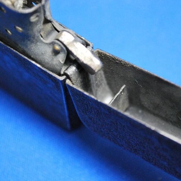 | 備考: | 1943年後期~1945年製、ケース・インサート共にスチール製、インサート黒塗装、ダルマカム、波状リーフスプリング、ラウンド型カムレスト、14穴チムニー(片面7穴)、水平歯フリントホィール、シガレット型オイル止め(1本タイプ)、3バレル・ヒンジに緩みは無くクリック音も良好です♪♪♪ |
