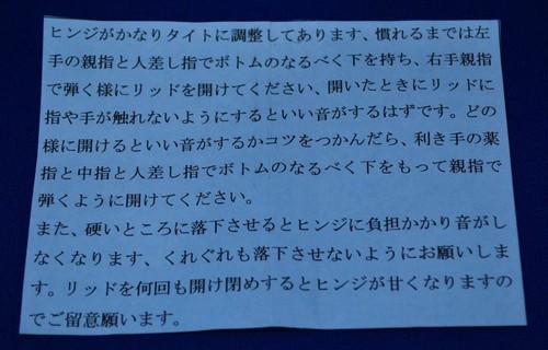 | 詳細: | この商品は、クリック音を良くする為に、ヒンジをペンチ等の工具でタイトに調整しています。 高音で伸びのあるクリック音を、お楽しみ下さい、、、 |