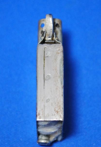| 備考: | インサートから判断すると1941年後期製、スチール製インサート(スチール板からの溶接成形・刻印なし)、ダルマカム、水平歯フリントホイール、スチール製・小型スクリュー、タバコ・フィルター型オイル止め(多少変形あり)、1枚型コットン。 今から約70年以上も前の希少な「インサート」なので、クリーニング等はせずに、そのままの状態でお届けします。(一発着火確認済み) この商品には、ケース内部に数字の「5」が2か所打たれているだけで、ホールーマーク及び純銀を裏付ける刻印は打たれておりません。しかし、重さ及び質感等は純銀ケースと思われ、また「クリック音」も、純銀ケース特有の良い音色です。(2018.1.23追記) |