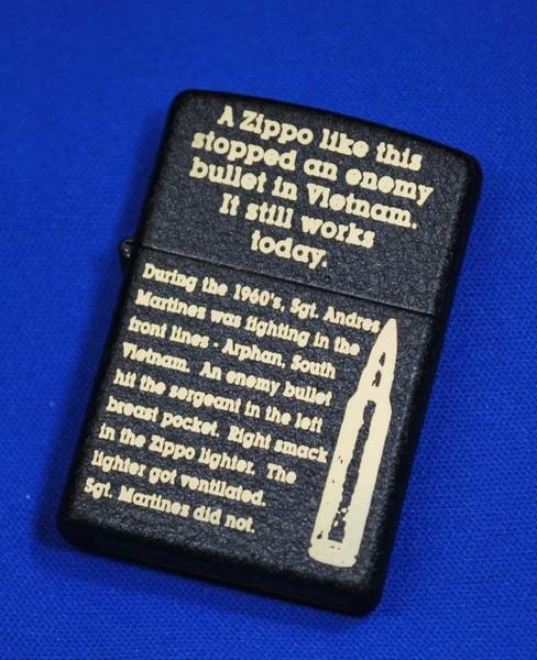 | 詳細: | 弾丸にも耐え、人命を救ったZippo 社蔵出しエピソード 耐風性に代表される機能、どんなに厳しい条件下でも着火し、滅多に壊れることのない信頼性、優れたデザイン、、、Zippo は、それを持つ人々に様々な価値を提供し続けてきた。これまでに5億個以上のZippo が製造され、愛用者は世界中に広がっているが、一部の幸運な人々には、それを遥かに凌駕する計り知れない価値をもたらした。 Zippo が銃弾を防ぎ、彼らの命を救ったのである。(コメントはジッポーコレクション第17号より転載させて頂きました) |