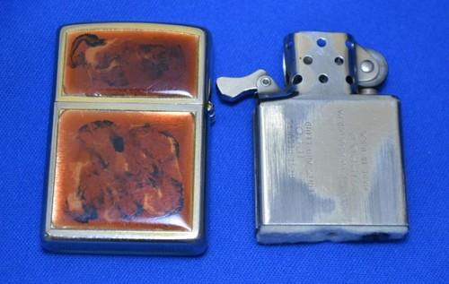 | 詳細: | 金メッキが施されたケースの表面を削って窪みを作り、そこへ複数の色が配されたアクリル樹脂を流し入れて混ぜあわせる。こうすることで、鼈甲に近い見た目と質感を実現するとともに、同じ文様が二つとない、唯一無二のライターが誕生する。中央のパネルには、オーナーのイニシャルを刻印できるようになっている。(コメントはジッポーコレクション第15号より転載させて頂きました) 販売から2年後、前記の様な手の込んだ手法から、アクリル・パネルをケースに貼り付ける工法に変わり、ウルトラライト・シリーズが生まれるきっかけにもなりました。 |
