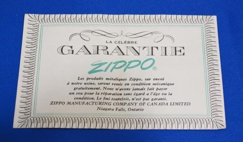 | 詳細: | GUARANTEE カナダ・ジッポーの保証書です。(特徴は、表面最下段が"Niagara Falls, Ontario”の文字で、裏面は゛フランス語”表記です) |