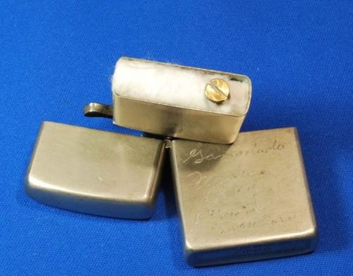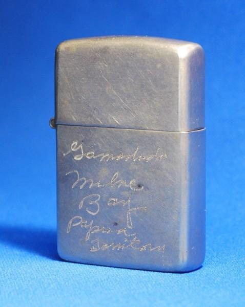 | 備考: | 1946年前期製、少しのヒンジの緩みや、微キズ等は見られますが、味のある「飴色」素地仕上げで、年代の割には美品です。(箱等の付属品はありません) 人気のニッケルシルバー(1946年前期製)、短期製造の希少品です。(1946年後期からケースにクロムメッキが施され、フリントホィールが斜め歯に変わります) 「1943.1945」と年号の書き込みがあり、興味深い逸品です。 |