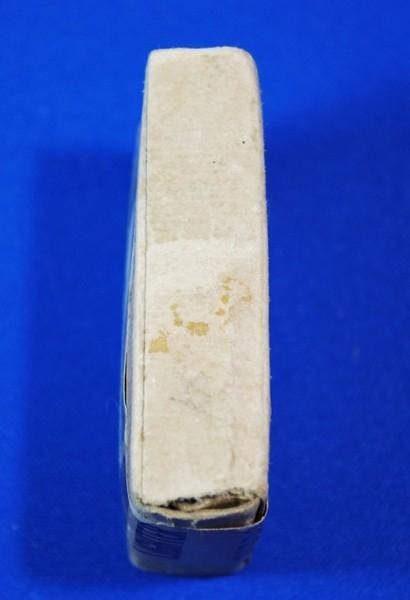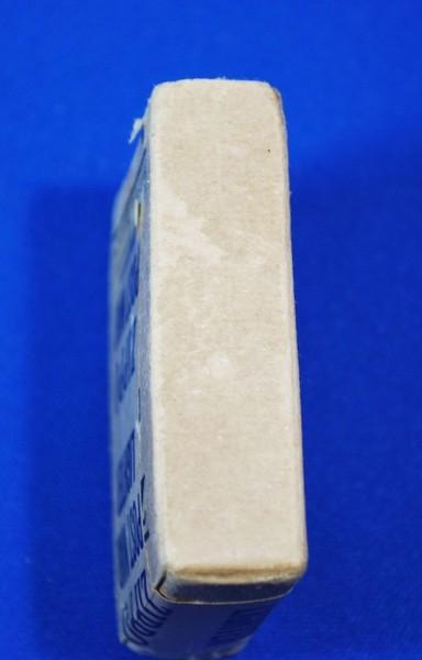 | 詳細: | 1943年~45年ブラックラッケル用・キャラメル箱のイラストは、1946年モデルが使われています。 本品の箱は、ブラッククラッケル前期箱(ブラックラッケルのイラスト)にPOST WAR(戦後)のシールが貼られていて、1946年ニッケルの初期ロットに使用されたものです。 1946年のメッキなしモデルは1946年中頃に生産中止されましたが、初期ロットは「1945年8月終戦後」に生産された可能性が高いと思われます。 化粧箱が出来るまで臨時にシールを貼り出荷されたものと思われます。 |