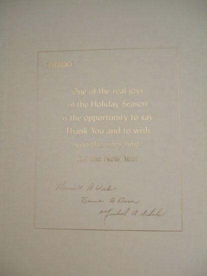 見開きにZIPPO 役員のメッセージが記されてます。 |