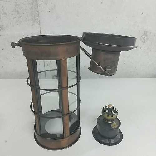 | 詳細: | オークションで見つけ「バーナー」に付けるホヤが欠品しているが、側面はガラス5面(差し込み式)なので、ホヤは要らないと思い、安いので購入しました。古いものではないが、多少の錆やホコリ(汚れ)がアンティーク感を出しています、、、 香港製の灯油ランタンです。(燃料用アルコールでも可) サイズは約:直径11.5㎝(オイルポット幅5㎝)、高さ29㎝(吊るすと35㎝)位です。 |