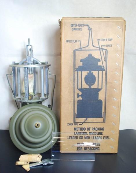 | 詳細: | Coleman社の220系ランタンをベースに作られた設計図を元に、アメリカ国内の数社が U.S. Military(米軍)に供給していたGIランタンです。戦時利用も想定して各処に工夫の凝らしたミリタリー仕様のランタンに仕上がっています。 本品はSMP社製(ステート・マシーン・プロダクツ)、見た目は同じでもタンク裏のスタンプ(刻印)で製造元の判別が可能です。 GIランタンは、コールマンを筆頭に AMG,SMP,ARMSTORONG,THERMOS 等が確認されています。 レザーのポンプカップやマントル・補修用のツールが、タンク内に収納されています。グローブはミルスペックらしく4分割のタイプを採用していて、割れた際も一部の交換で済むようになっています。通常のランタンのグローブより分厚く作られていて、割れにくくなっています。(グローブには、小さいカケやクラックありますが、使用には問題ないと思われます) 燃料バルブを少し開けて生ガスを出したら直ぐに燃料バルブを閉め、少し出た燃料に点火ししばし気化するのを待つワイルドな点火が特徴です。 軍用らしくホワイトガソリンだけでなく、赤ガス(レギュラーガソリン)も使えるダブルフューエルタイプです。 |